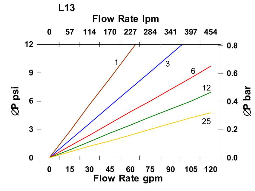 This filter is compatible with the following fluids but pressure drop will vary depending on viscosity and temperature: