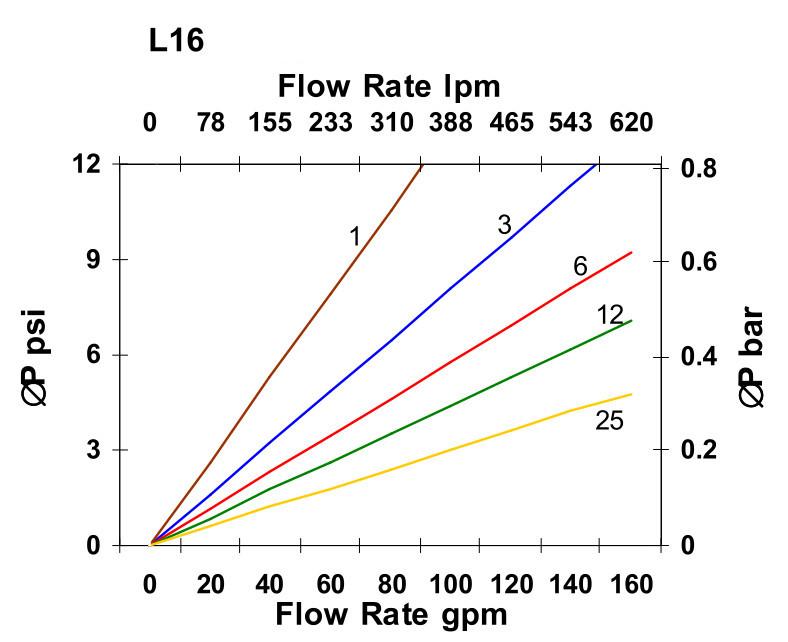 This filter is compatible with the following fluids but pressure drop will vary depending on viscosity and temperature: