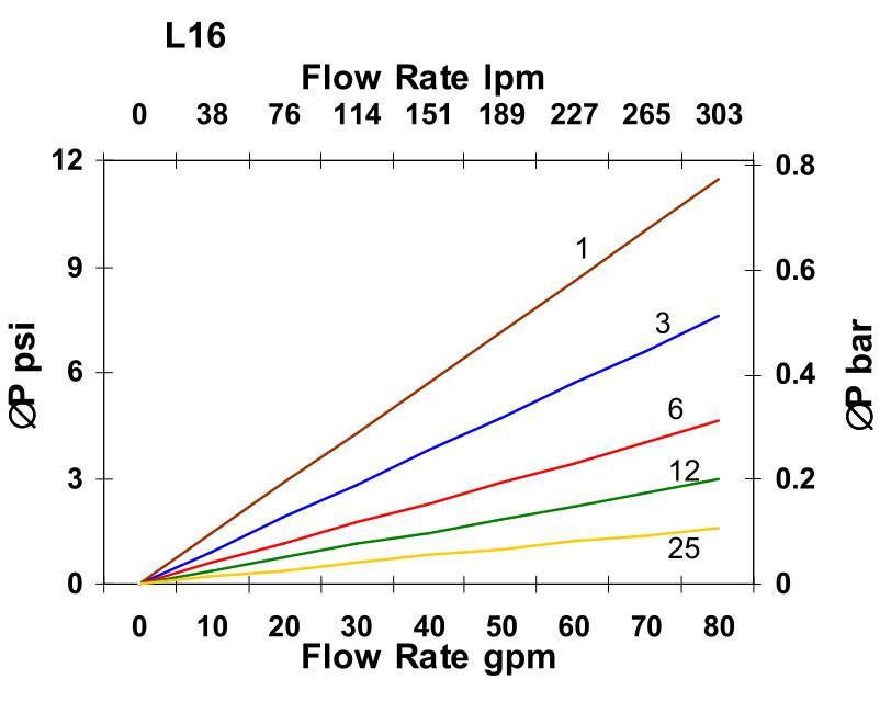 This filter is compatible with the following fluids but pressure drop will vary depending on viscosity and temperature: