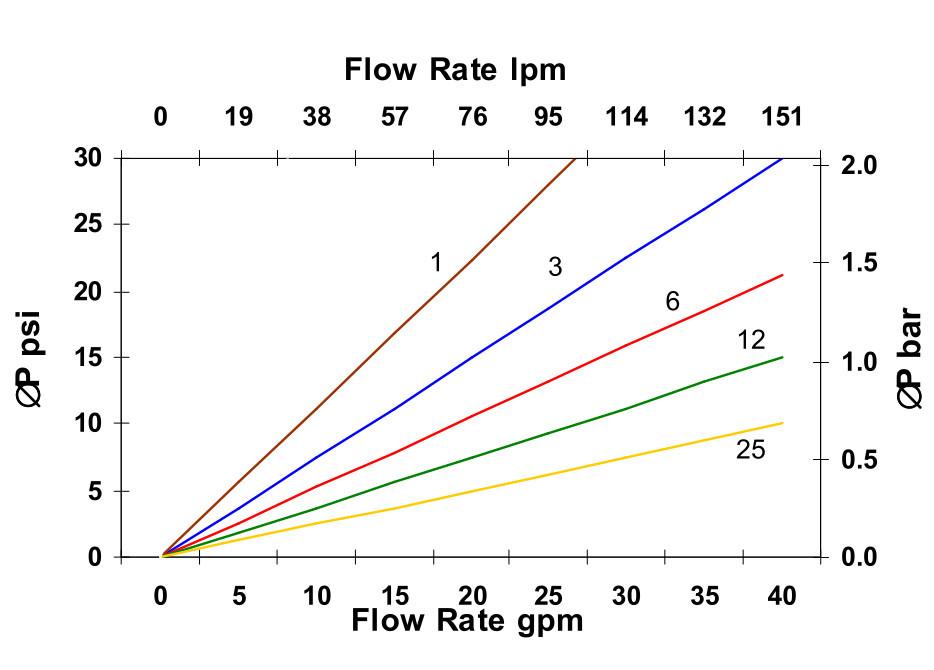 This filter is compatible with the following fluids but pressure drop will vary depending on viscosity and temperature: