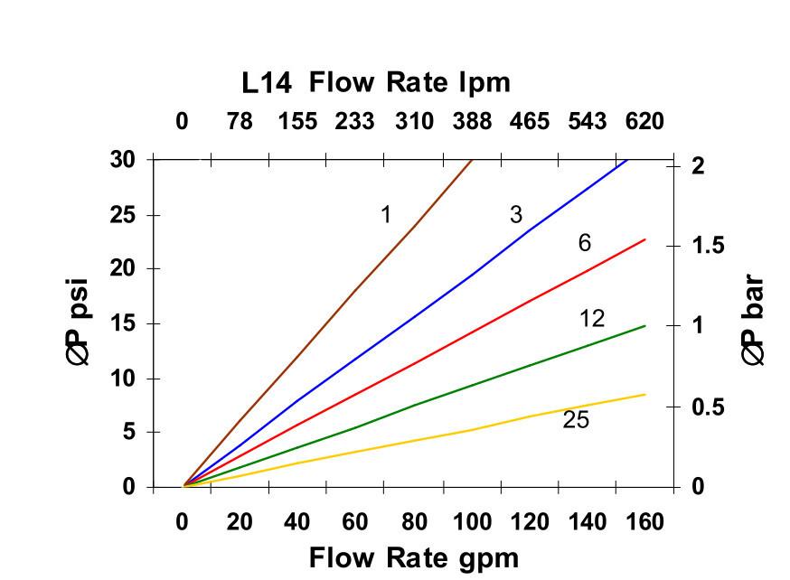 This filter is compatible with the following fluids but pressure drop will vary depending on viscosity and temperature: