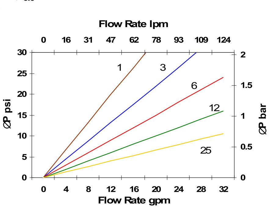 This filter is compatible with the following fluids but pressure drop will vary depending on viscosity and temperature: