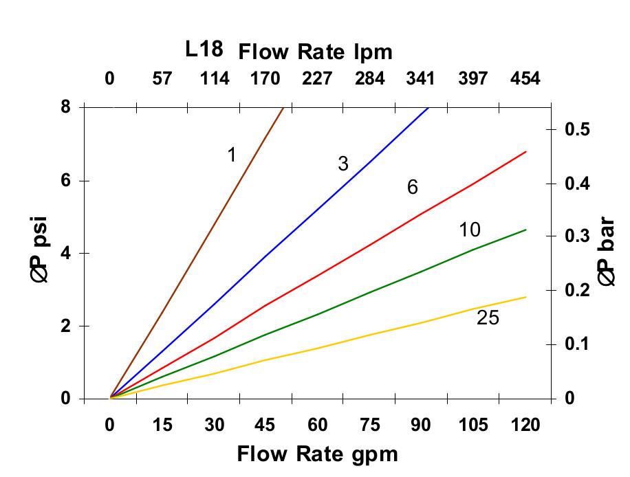 Note: Pressure drop may vary depending on fluid viscosity and operating temperature.