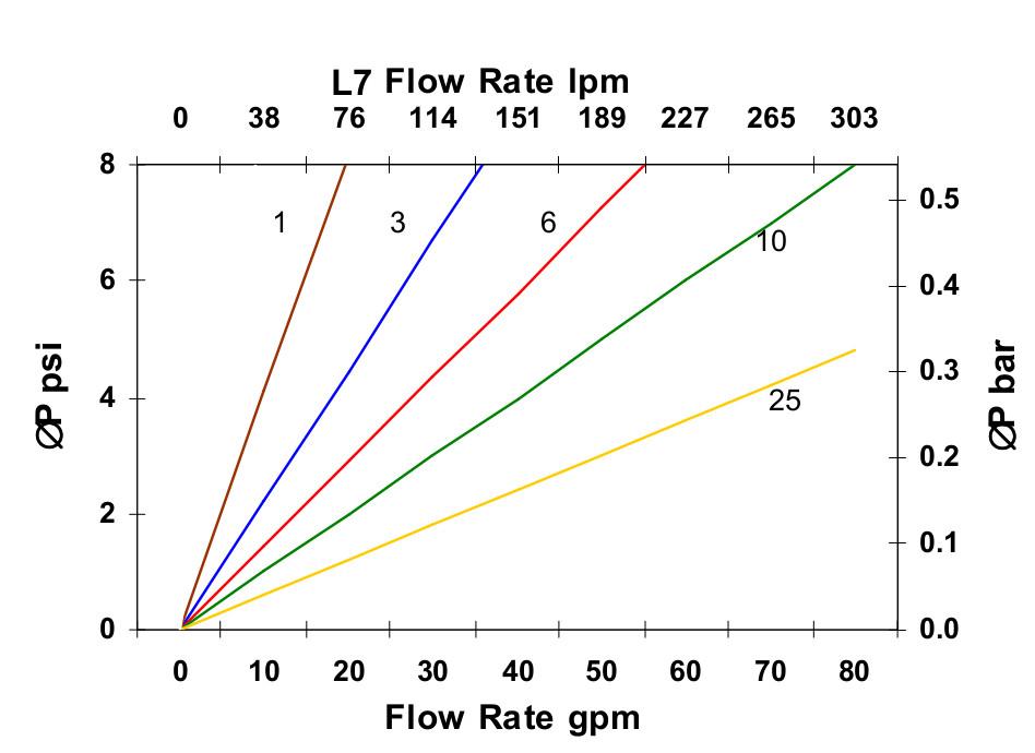 Note: Pressure drop may vary depending on fluid viscosity and operating temperature.