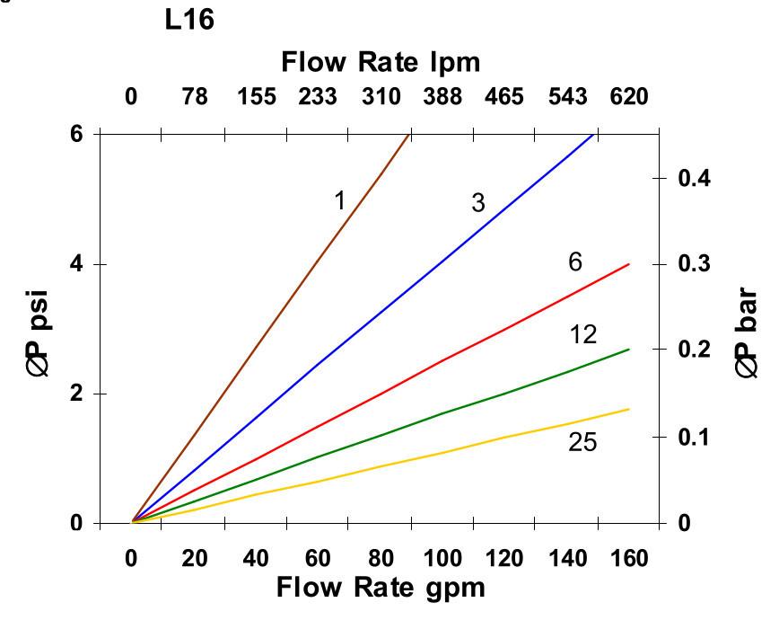 Note: Pressure drop may vary depending on fluid viscosity and operating temperature.