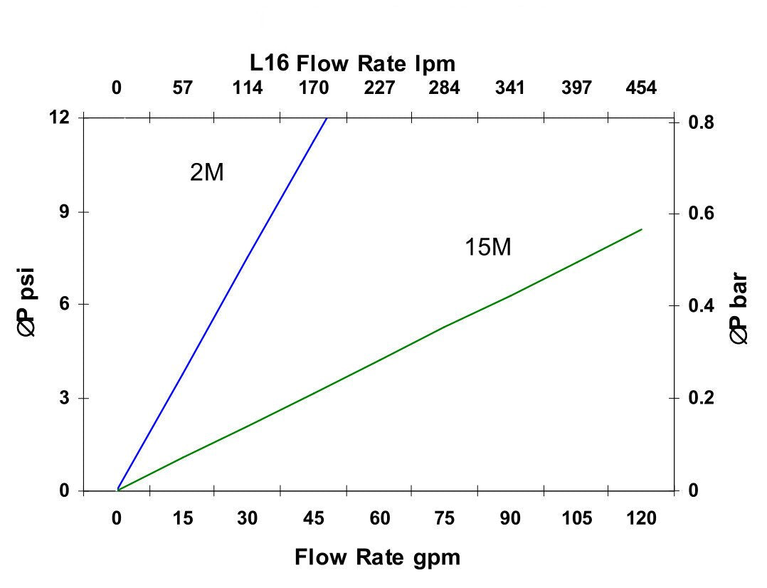 Note: Pressure drop may vary depending on fluid viscosity and operating temperature.