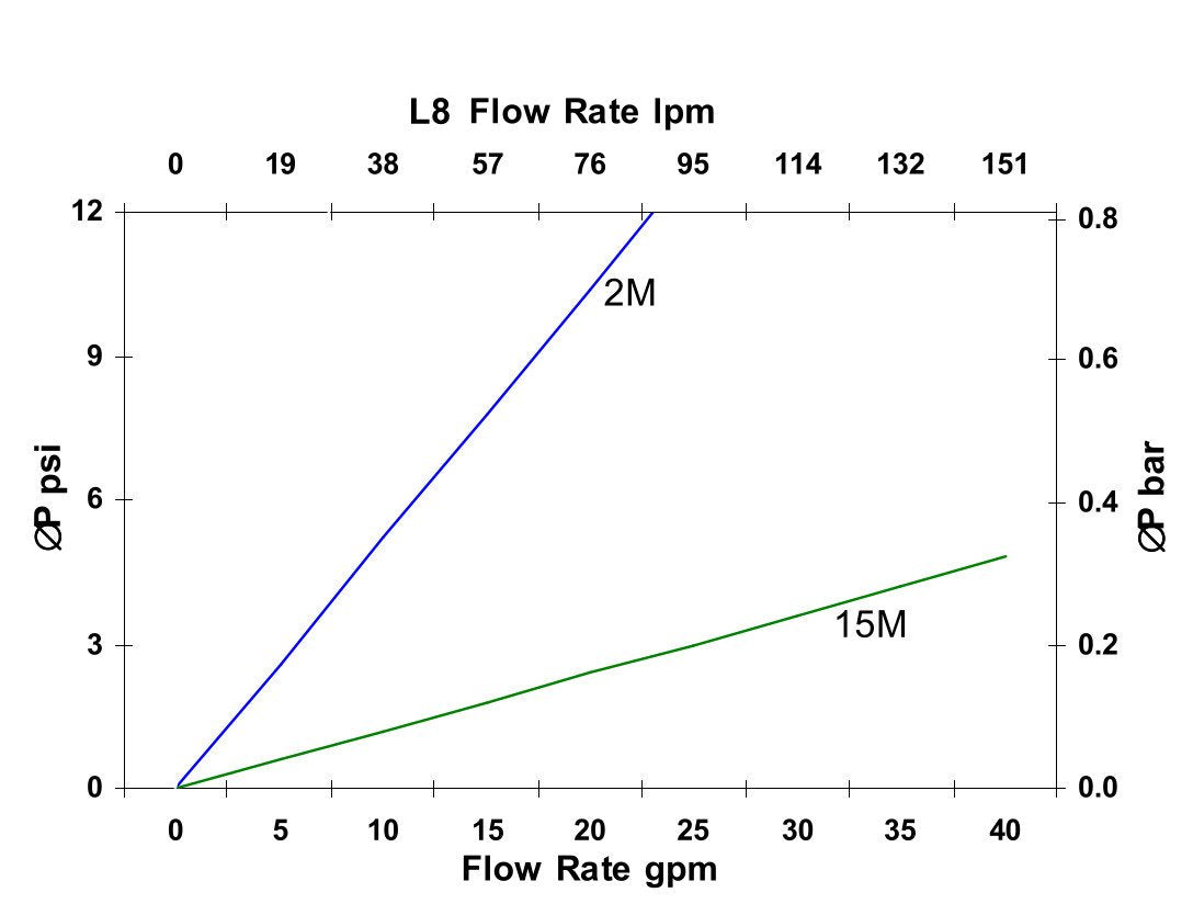 Note: Pressure drop may vary depending on fluid viscosity and operating temperature.