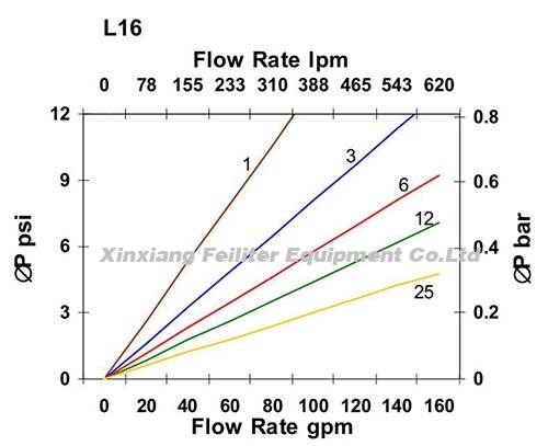This filter is compatible with the following fluids but pressure drop will vary depending on viscosity and temperature: