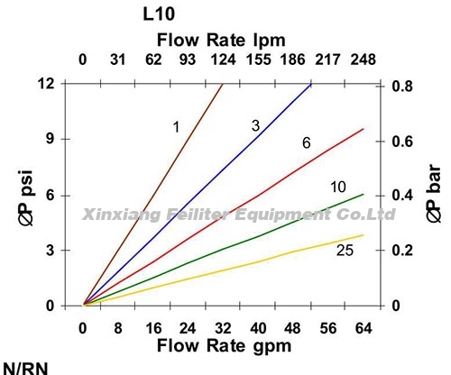 This filter is compatible with the following fluids but pressure drop will vary depending on viscosity and temperature: