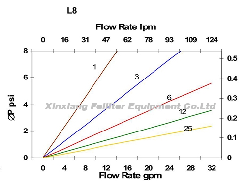 This filter is compatible with the following fluids but pressure drop will vary depending on viscosity and temperature: